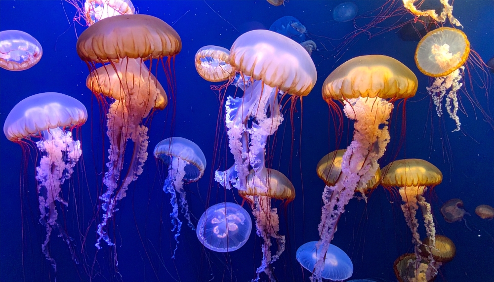 ✨ 感動・アート寄りトーン 光と音が織りなすクラゲのステージへようこそ。 漂うように舞う姿は、まるで水の中のバレリーナ。 見る角度や照明によって表情を変えるクラゲたちの世界は、 海の神秘を感じるアート空間です。